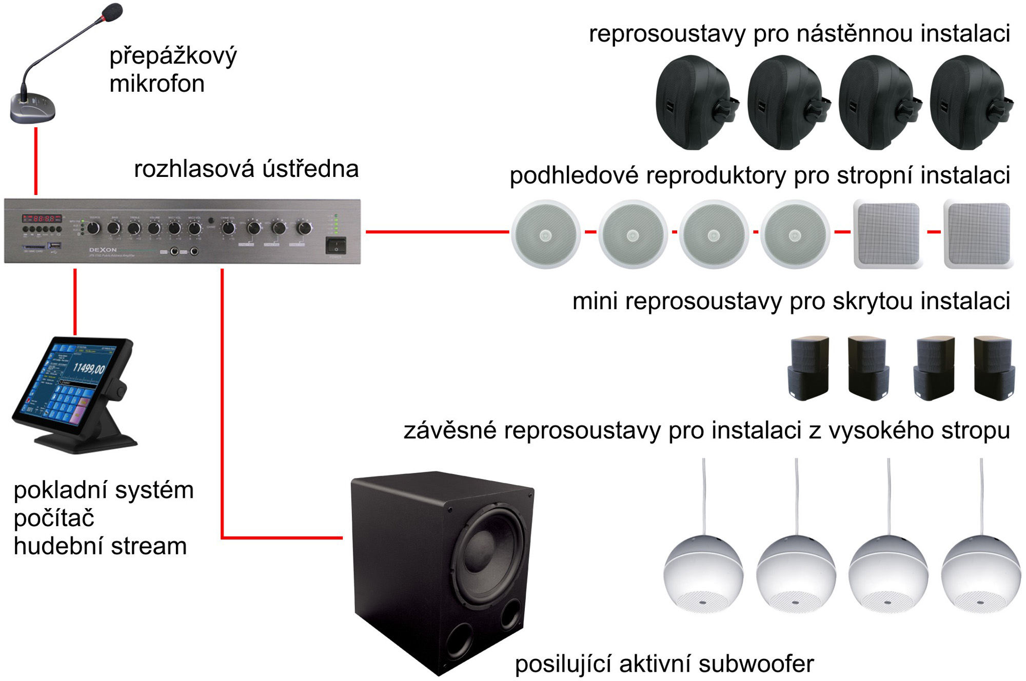 Ozvučení restaurace Ozvučení prodejny Ozvučení supermarketu
