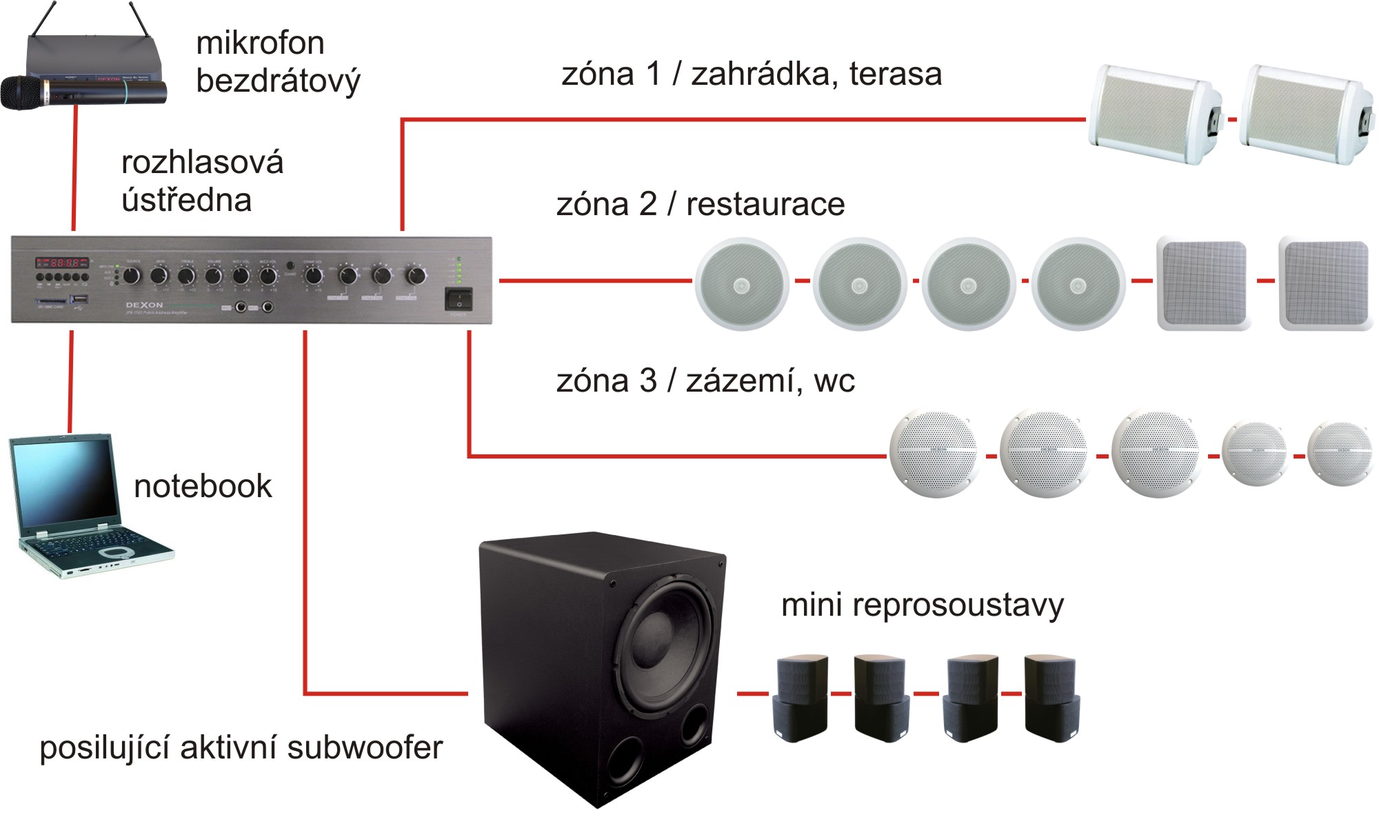 Tím nejklasičtějším, potažmo nejzastaralejším ozvučením v restauracích jen dnes kombinace Hifi receiveru a dvou napojených „bedýnek“. To že příjemná hudební kulisa k jídlu a pití prospívá, je jasné, a proto nastává čas na kvalitnější ozvučení.